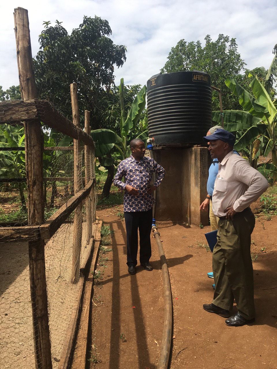 Außerdem freuen wir uns über die vielen positiven Ergebnisse rund um die mit Eurer Hilfe unterstützten Projekte der Mwereni-Boarding School, von denen sich Georg nicht nur selbst überzeugt hat, sondern die er auch mit zahlreichen Fotos dokumentiert hat: der Fischteich ist fertiggestellt, die Hühner liefern täglich Eier, die Kühe haben zwei Kälber geboren und geben viel Milch, der Brunnen mit der Solar-Wasserpumpe ist bereits im Einsatz, die Obst- und Gemüseernte ist reichlich und die Solarpaneele liefern unter anderem den Strom für eine Nachtbeleuchtung im Internat.