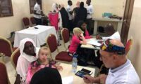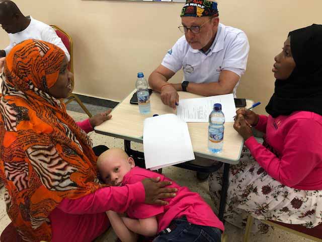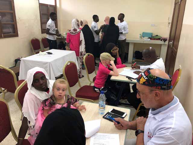 Wir haben sie informiert und Hüte, Kappen, Sonnenbrillen und langärmlige T-Shirts verteilt. Die Patienten wurden alle auch untersucht. Mehrere zeigten verschiedene Arten von Hautkrebs. Sie erhielten Operationstermine im Krankenhaus bzw. weitere Termine bei Dr. Hafidh Hassan.