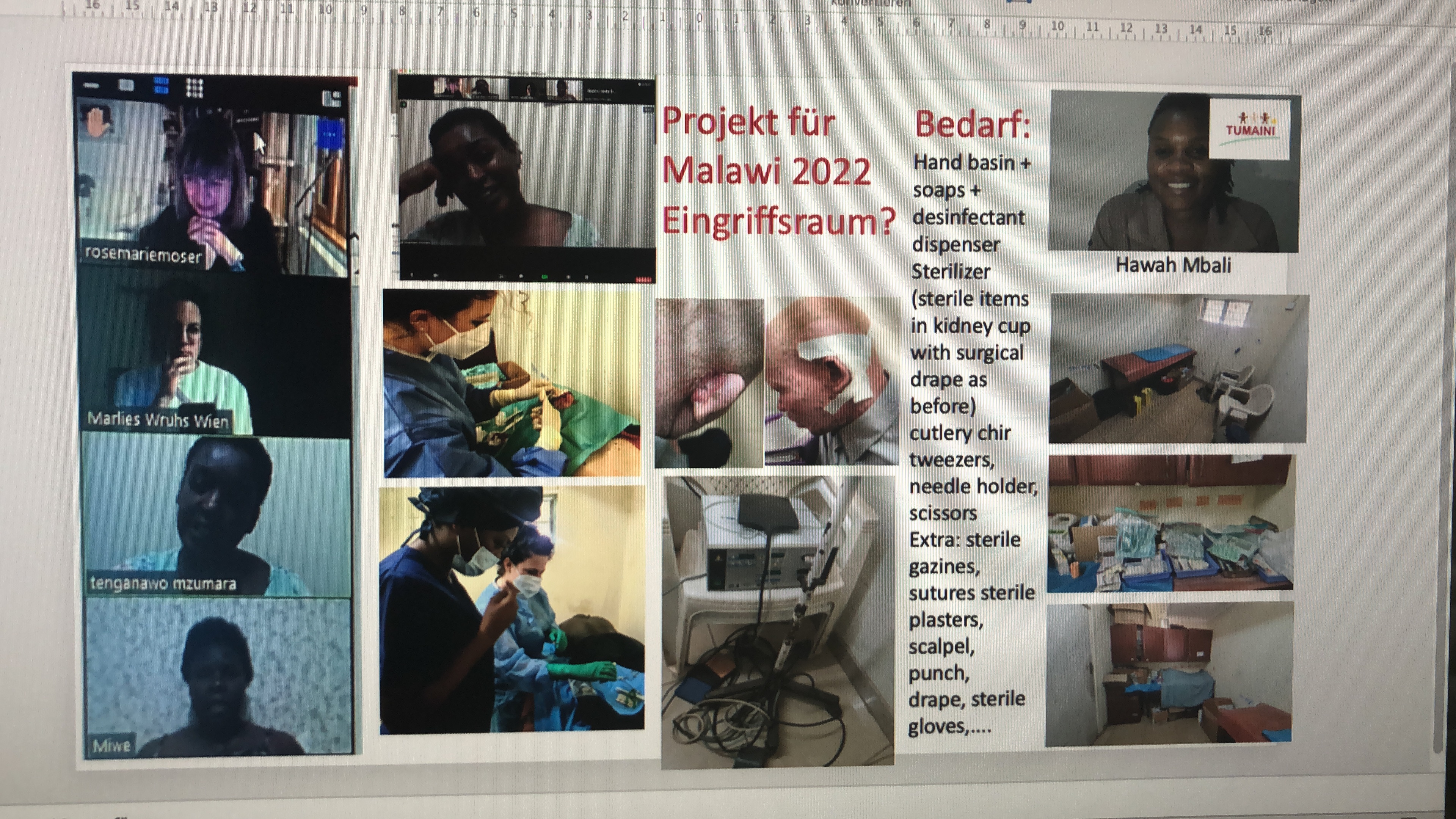 Im Rahmen einer Zoom Sitzung mit dem Team um Dr. Mzumara haben wir besprochen, welche Unterstützung die Dermatologie-Ambulanz braucht. So sind etwa Neuerungen in der Ausstattung des Eingriffsraums, ein Sterilisator und neue Einrichtung notwendig. Der Vorstand hat das Projekt genehmigt – Mittel aus einer Großspende der ÖGDV und die Spende einer Patientin von Dr.in Silvia Iby, die anonym bleiben möchte, stehen dafür zur Verfügung.