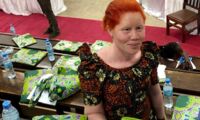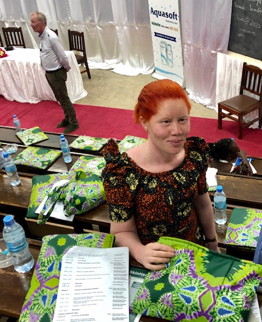 Judica (Foto unten) und Levinja nähen sonst die wunderschönen Flaschentaschen, die für das Projekt verkauft werden. Jetzt nähen sie Schutzmasken für das Krankenhaus und freuen sich, auf diese Weise etwas für die Unterstützungzurückgeben zu können, die sie erhalten haben.