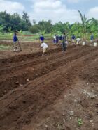 Die Kinder lernen, wie man mit limitierten Ressourcen Gemüse und Bäume heranzieht.